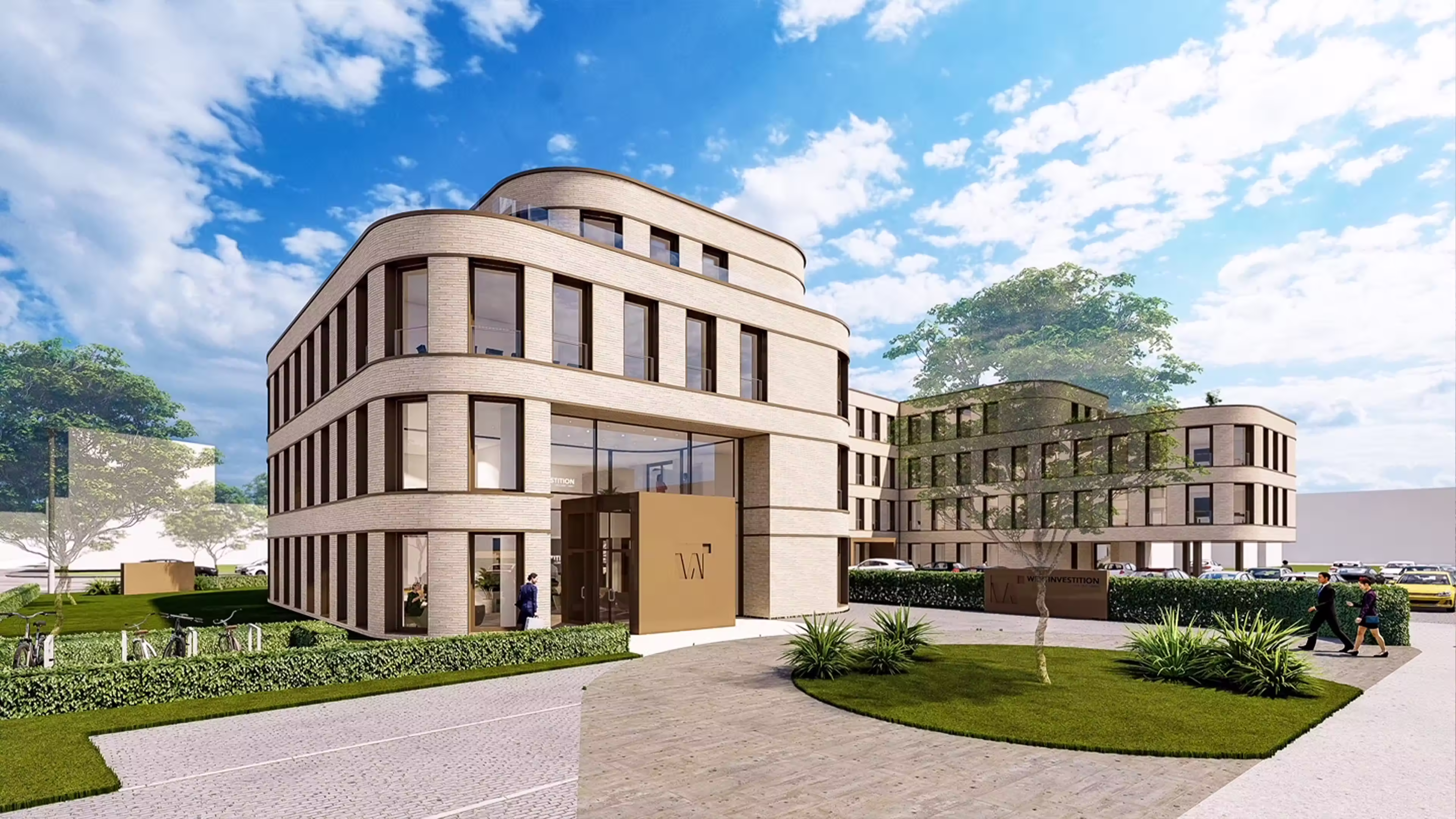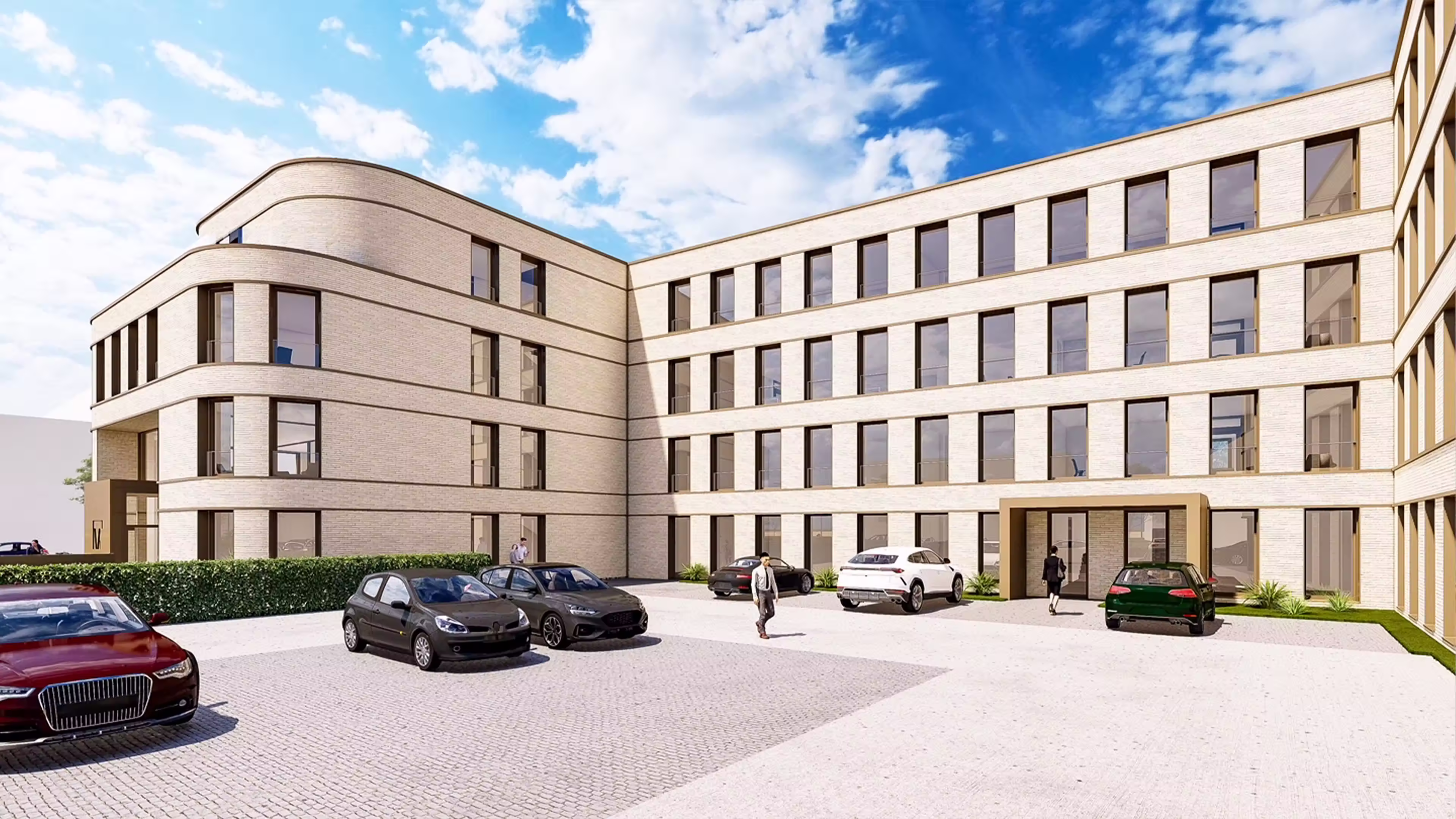 Die genehmigungsreife Entwicklung eines Bürokomplexes im Ostend umfasst die planerische Vorbereitung eines modernen Objektbaus mit einer Bruttogrundfläche von rund 3.850 m² und Nutzungsmöglichkeiten für bis zu sieben Büroeinheiten. Im Rahmen der Projektsteuerung koordinierten wir alle planungs- und genehmigungsrelevanten Schritte und stellten die sichere Abwicklung zwischen Bauherrschaft, Fachplanern und Behörden sicher. Die Architektur verbindet klare Linienführung mit abgerundeten Bauelementen und großzügigen Fensterflächen, um ein hochwertiges, repräsentatives Arbeitsumfeld zu schaffen. Mit seiner offenen Fassadengestaltung und den weitläufigen Außenbereichen ist der Komplex auf flexible Büroprozesse und zukunftsorientierte Nutzeranforderungen ausgerichtet.